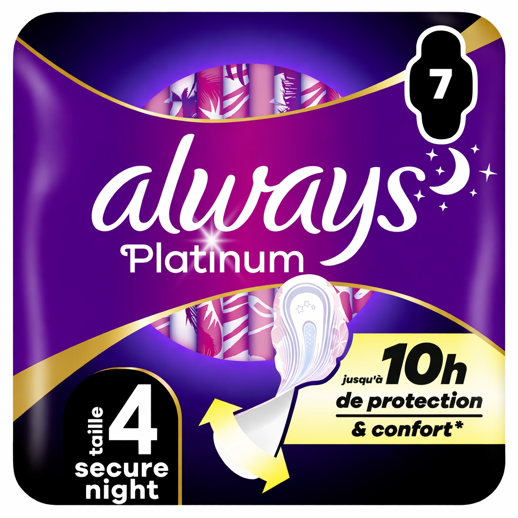 C1867/8 ALWAYS SERVIETTE HYGIÉNIQUE PLATINUM AVEC AILETTES SÉCURISÉ NUIT 7PCS TAILLE 4
