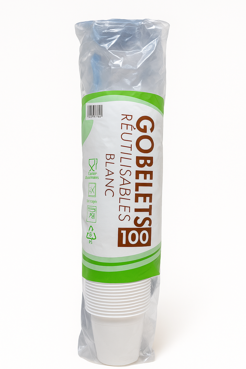 C1968/15 GOBELET BLANC PLASTIQUE RÉUTILISABLE 100 X 200 ML 7 OZ