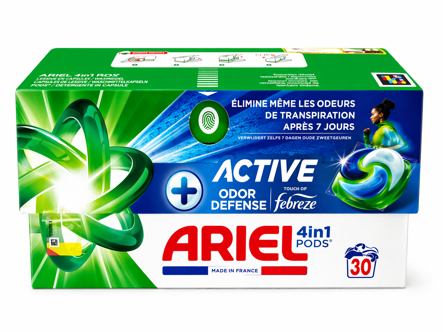 C2072/38 ARIEL PODS 4 EN 1 ACTIVE ODEUR DEFENCE TOUCHE DE FEBREZE - 30 LAVAGES