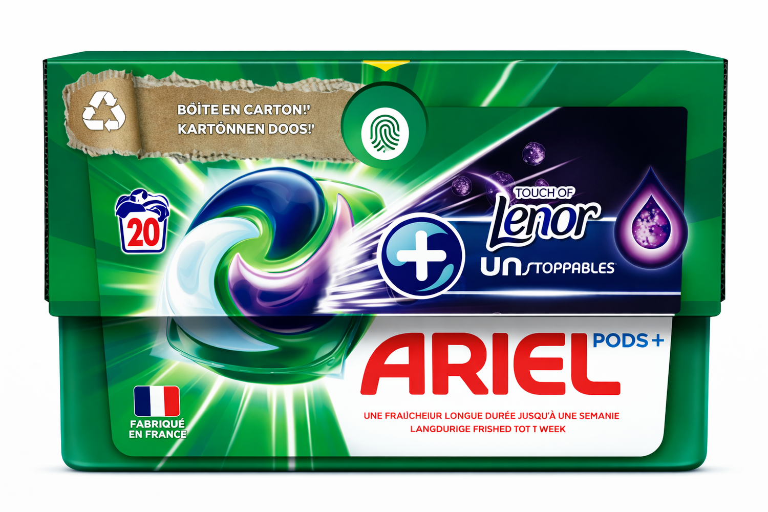 C2460 ARIEL ORIGINAL TOUCH OF LENOR UNSTOPPABLES LESSIVE EN CAPSULES PODS+ LESSIVE BLANCHE ET COULEURS 20 LAVAGES