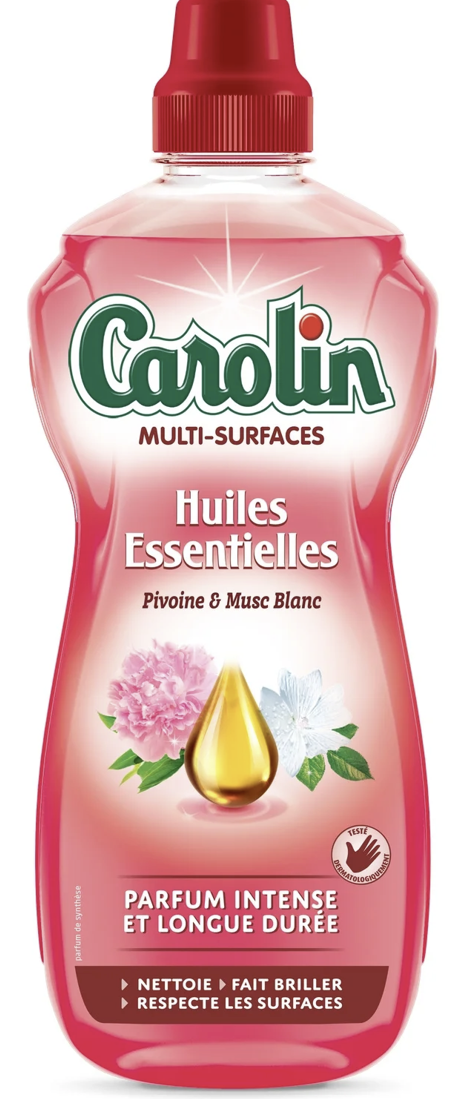 C2517/1 CAROLIN NETTOYANT MÉNAGER MULTI-SURFACES PARFUM HUILES ESSENTIELLES PIVOINE MUSC BLANC 1L