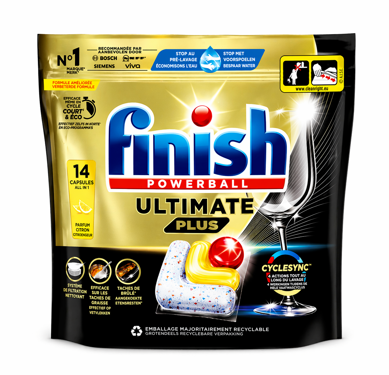 C2550 FINISH LAVE VAISSELLE POWER BALL ULTIMATE PLUS CITRON 170,8G 14 CAPSULES